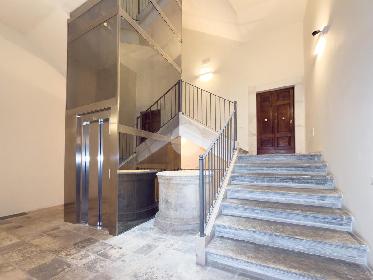Nel cuore del centro storico, in posizione strategica e comoda a tutti i servizi, proponiamo in vendita un ampio appartamento al piano rialzato di una palazzina signorile servita da ascensore.