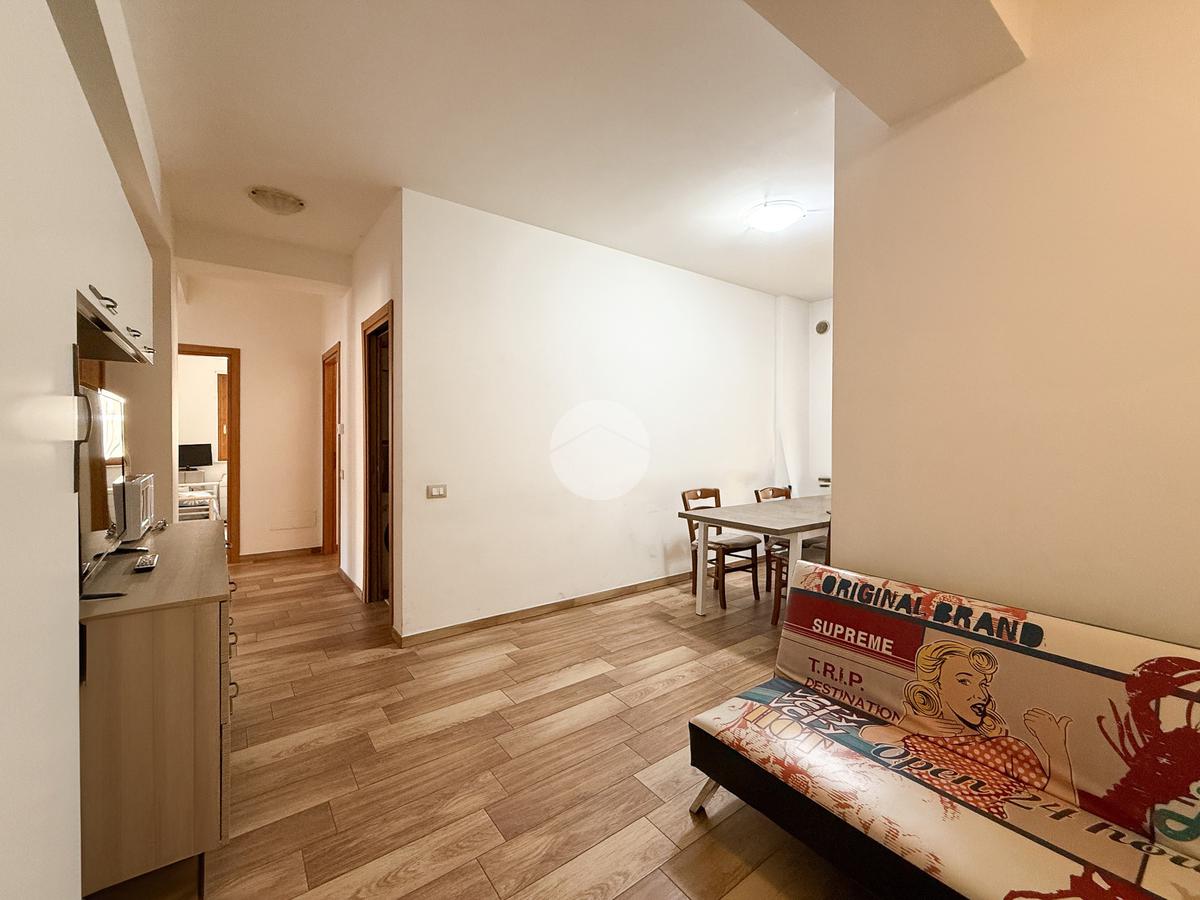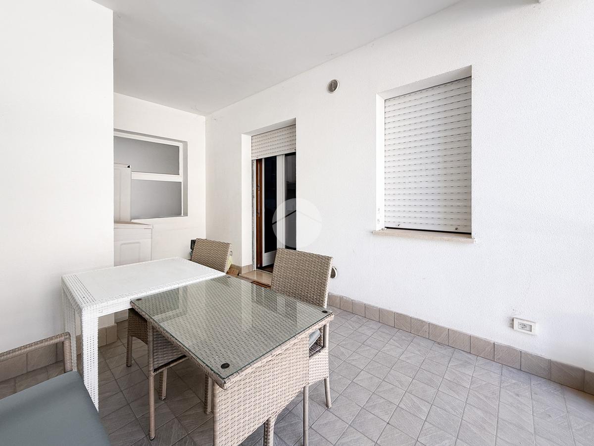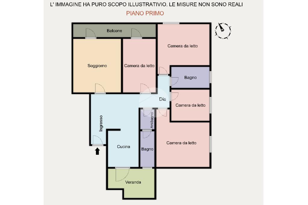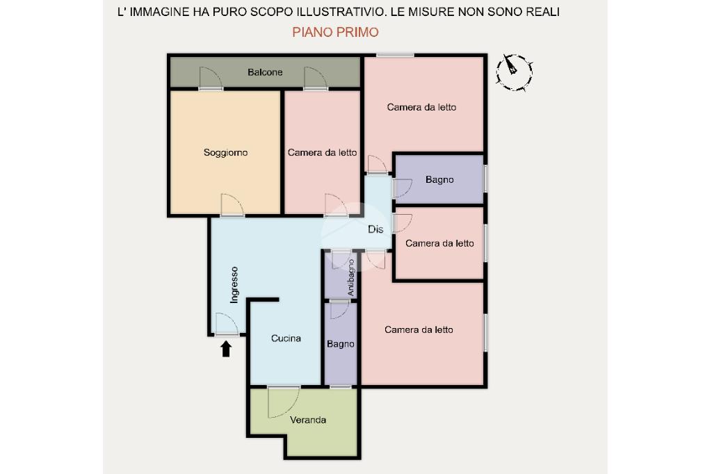L’immobile si compone di ingresso su disimpegno, soggiorno con balcone (al momento adibito a camera ), cucina a vista con accesso diretto al terrazzo, quattro camere da letto, di cui tre matrimoniali – una con accesso al medesimo balcone del soggiorno – ed una singola.