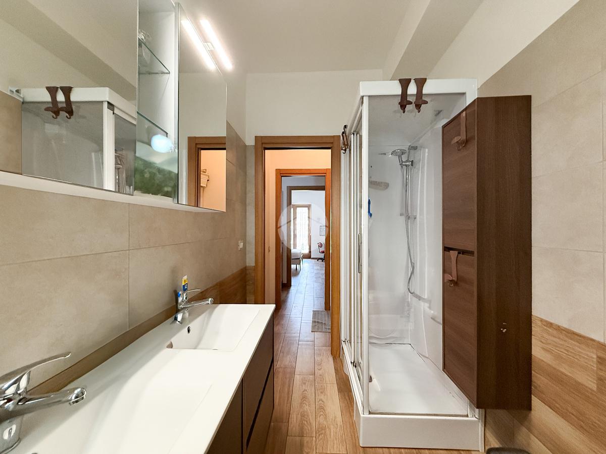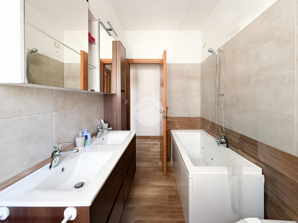 Sono presenti doppi servizi finestrati, entrambi dotati di doppio lavabo, uno con box doccia e l’altro con vasca, oltre ad un antibagno adibito a lavanderia.