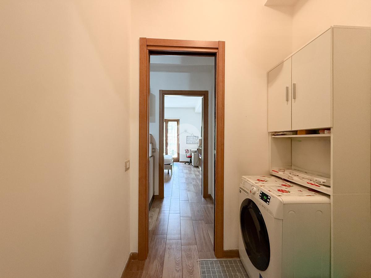 A completare la proprietà, un posto auto coperto all’interno del garage condominiale e una cantina di pertinenza.