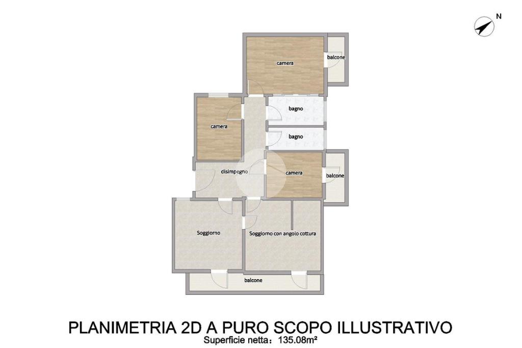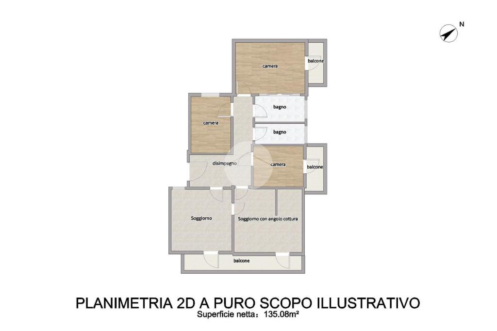 La zona notte comprende tre ampie camere matrimoniali, due delle quali con balcone, e due bagni entrambi finestrati: uno con box doccia e l’altro con vasca.