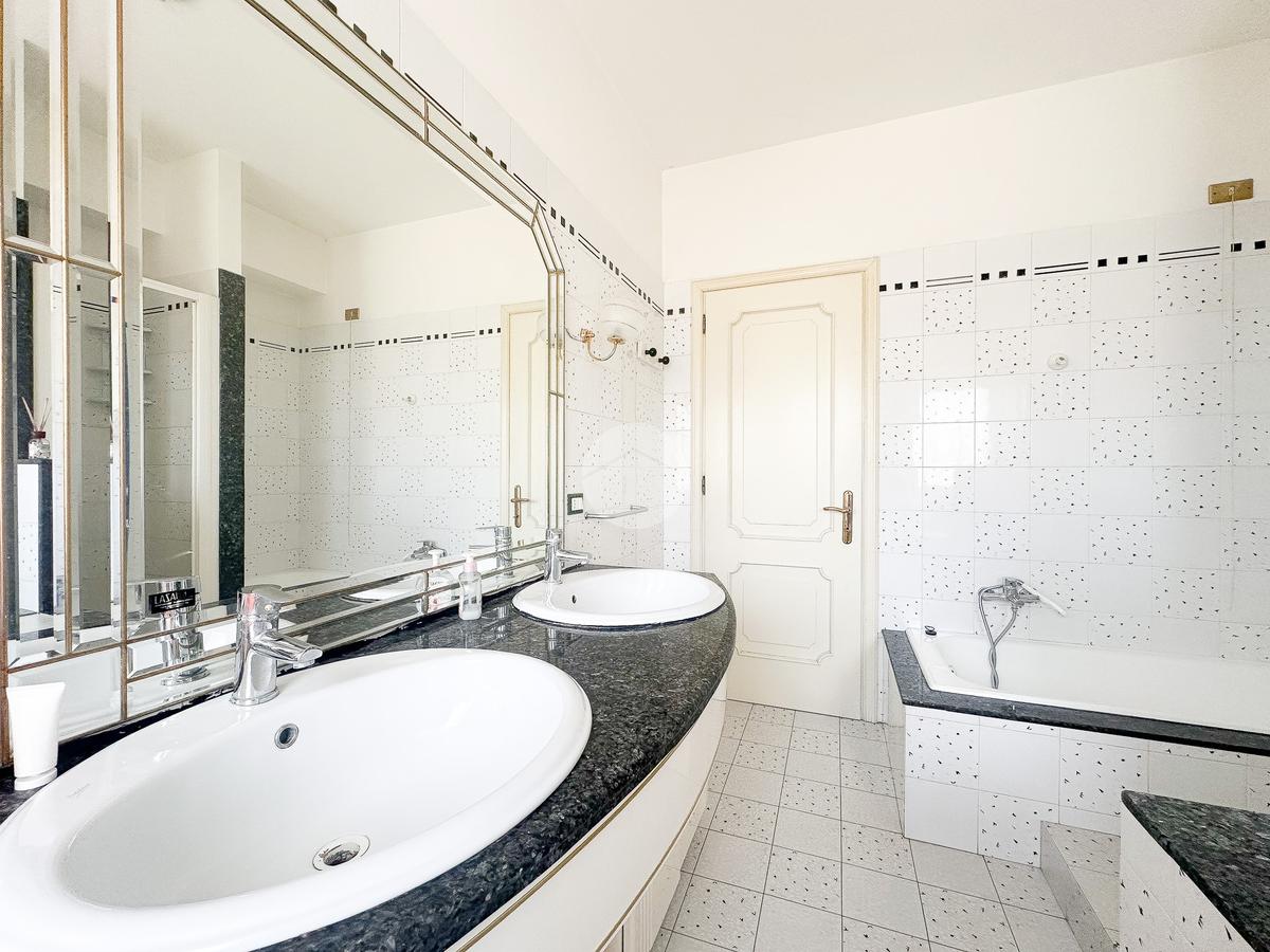 L’ingresso si apre su un disimpegno che conduce al soggiorno con cucina a vista ed accesso al terrazzo. La zona notte è composta da due camere matrimoniali, di cui una con accesso al medesimo balcone del soggiorno, e da un bagno finestrato dotato di doppio lavabo, vasca e box doccia.