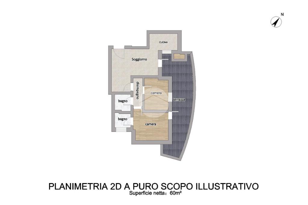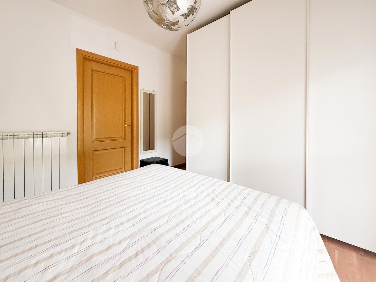 Dal disimpegno si accede alla zona notte, composta da una camera matrimoniale con accesso al terrazzo e bagno privato finestrato con doccia, una camera singola e un secondo bagno con vasca.