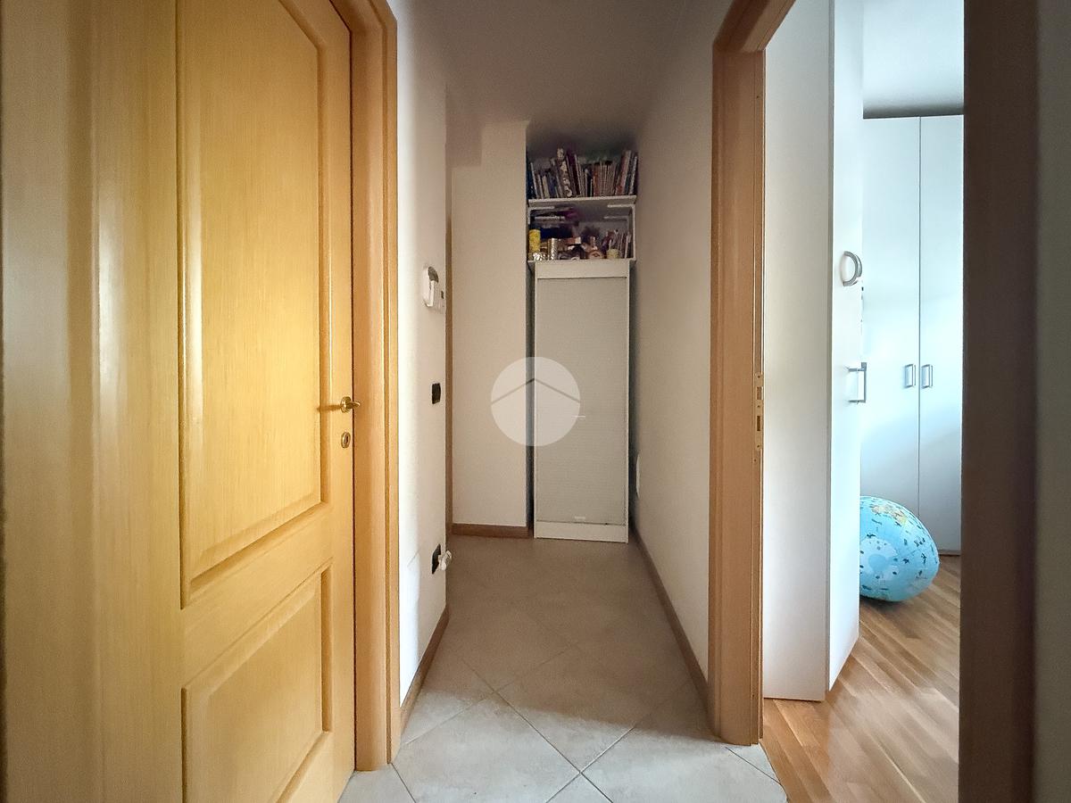 L’ingresso si apre su un soggiorno con cucina a vista e accesso al terrazzo, spazio luminoso e funzionale per la vita quotidiana. Il terrazzo è dotato di locale tecnico con caldaia, che garantisce praticità e ordine agli spazi.