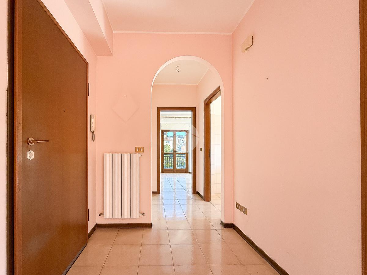 L’ingresso si apre su un disimpegno che conduce alla zona giorno, composta da un luminoso soggiorno con accesso al balcone semi-perimetrale e da una cucina abitabile con accesso allo stesso balcone, ideale per godere di momenti di relax all’aperto.