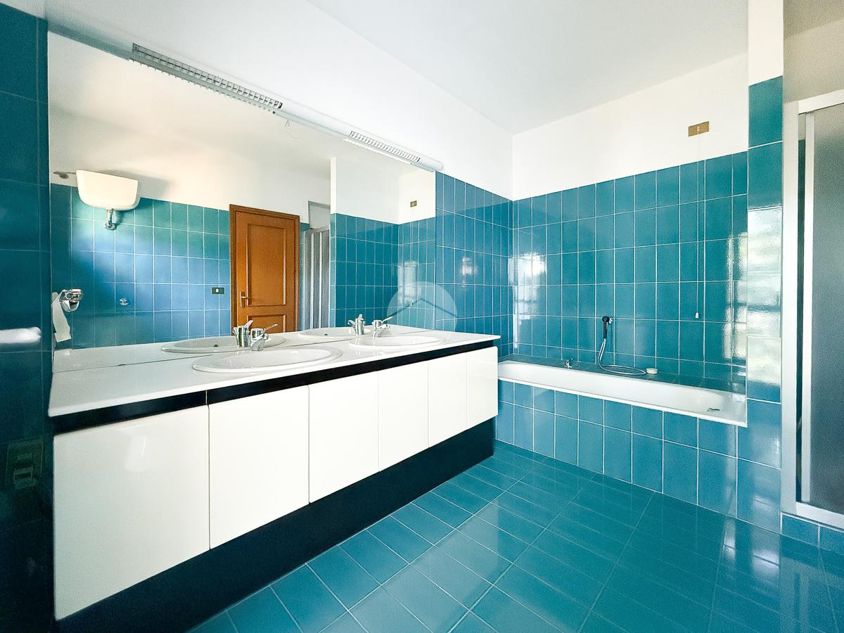 Presenti due bagni finestrati, uno dotato di vasca, l’altro con vasca, doccia e accesso a un balcone privato.