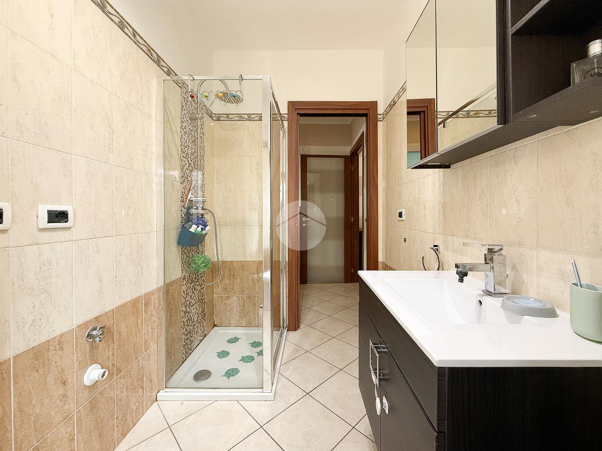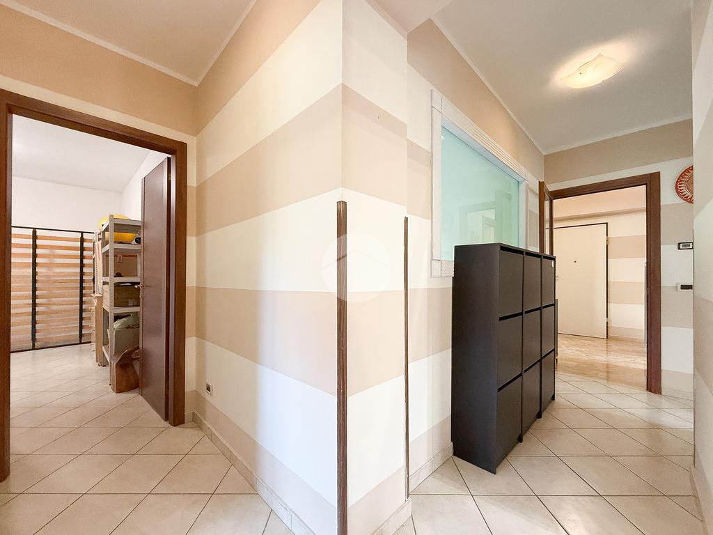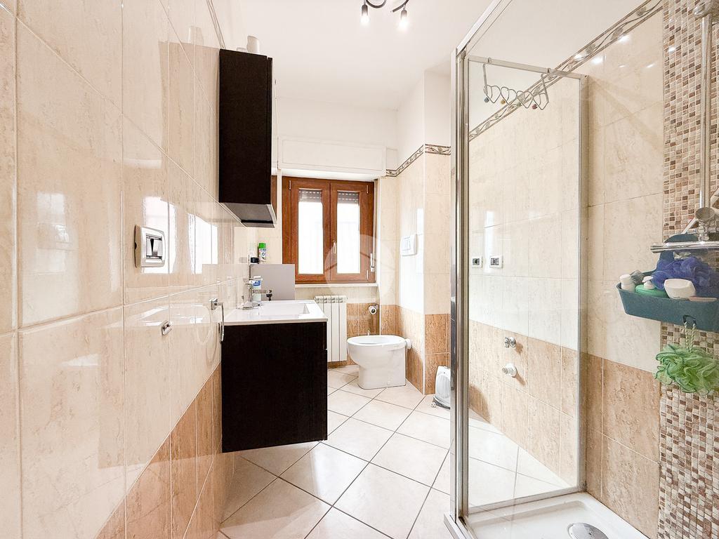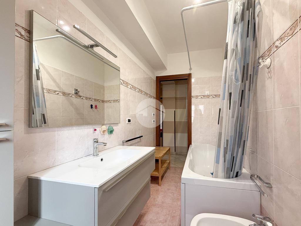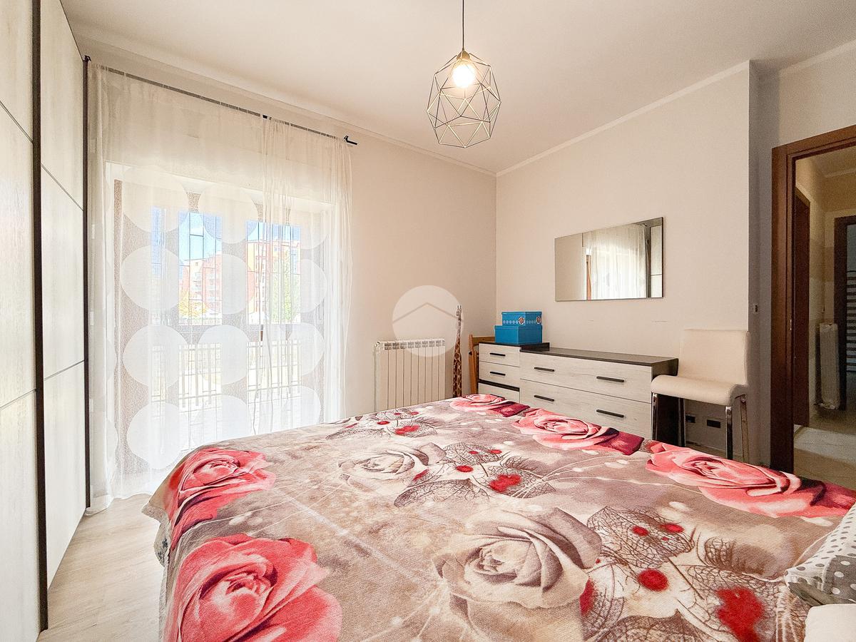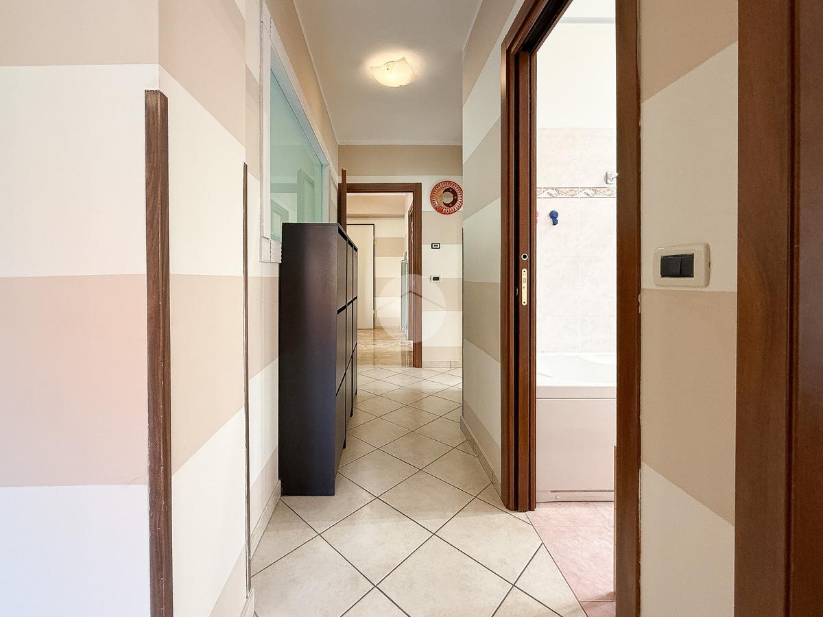 La zona notte è composta da tre camere da letto — due matrimoniali, entrambe con balcone privato, e una singola — oltre a due bagni finestrati, uno con vasca e l’altro con doccia.