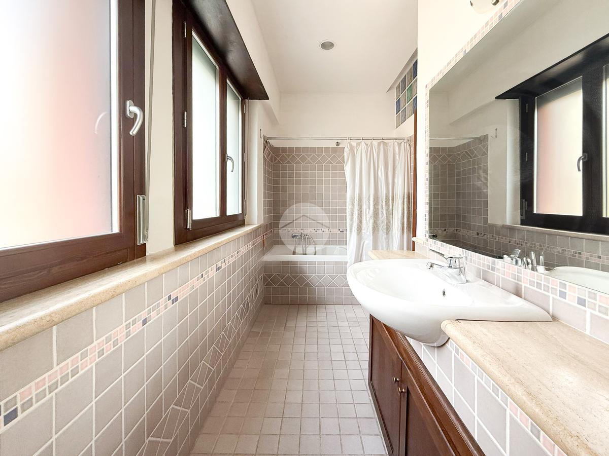 La distribuzione interna, razionale e ben organizzata, prevede un disimpegno che conduce alla zona notte, composta da tre camere da letto, di cui una con balcone privato, e doppi servizi entrambi finestrati, uno dotato di vasca e l’altro di doccia.