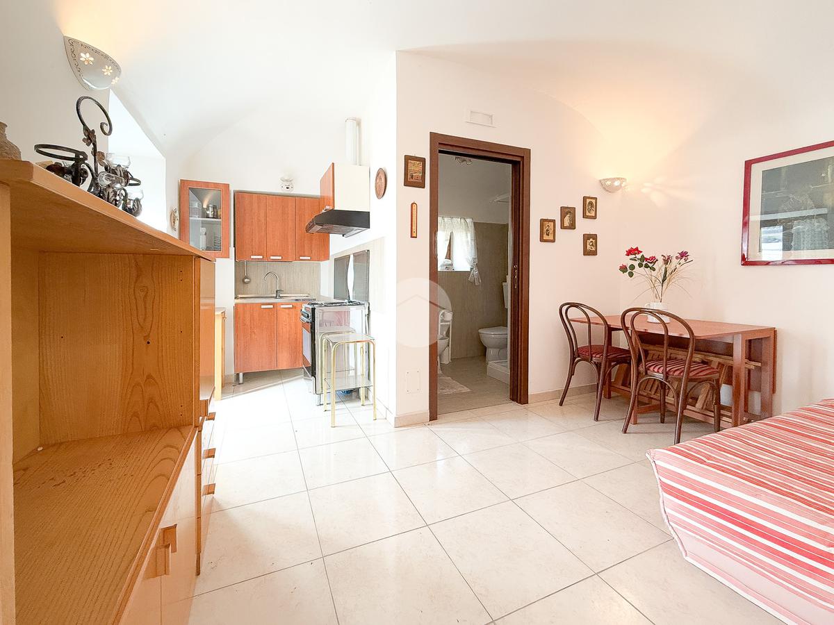 La proprietà si compone di un monolocale al piano terra di 22 mq, caratterizzato dalla presenza del camino, e di un bilocale al piano primo di 35 mq, composto da soggiorno con angolo cottura con accesso al balcone, camera matrimoniale, anch’essa con uscita sul balcone e bagno finestrato con box doccia.