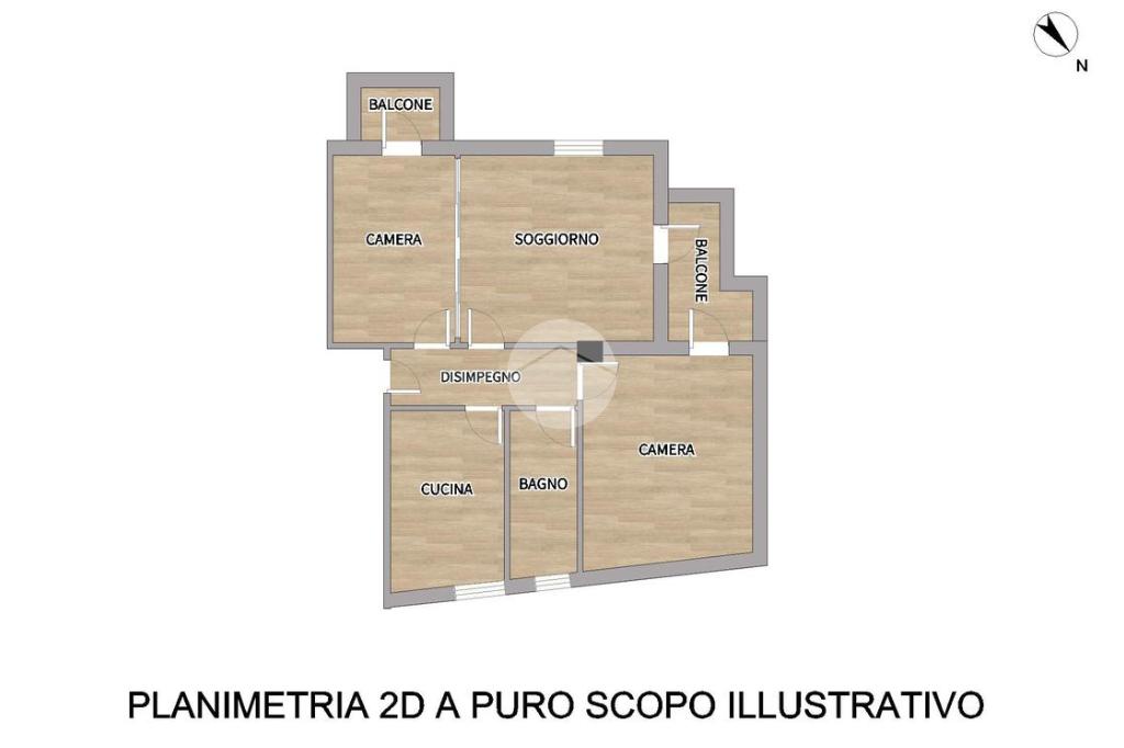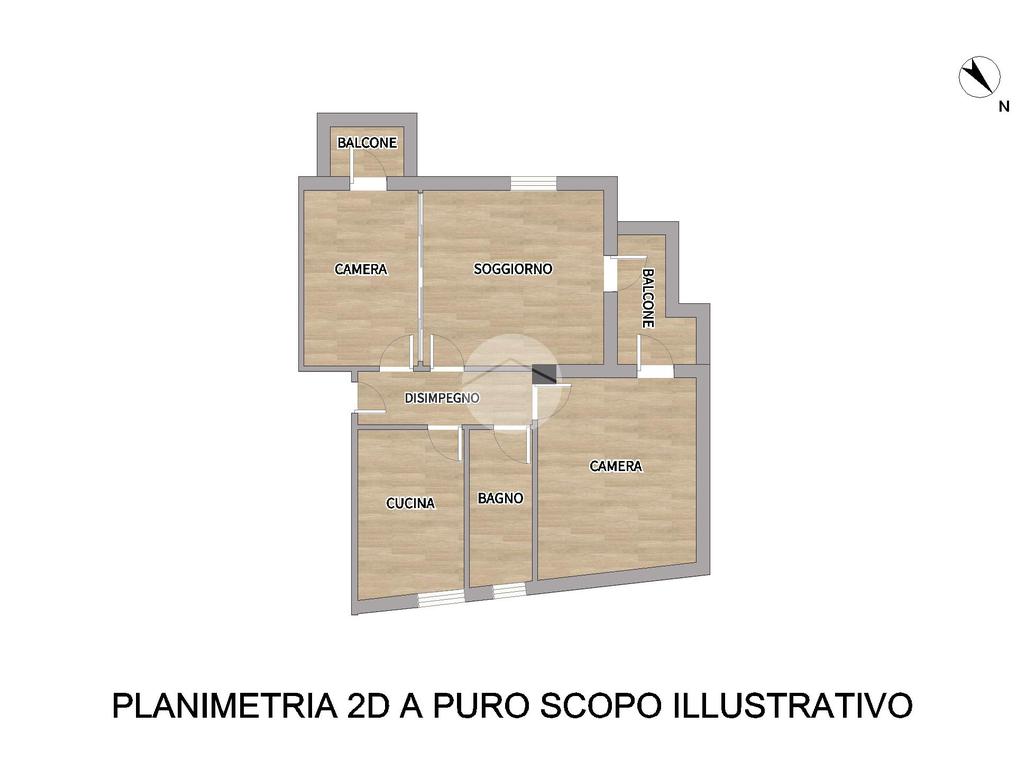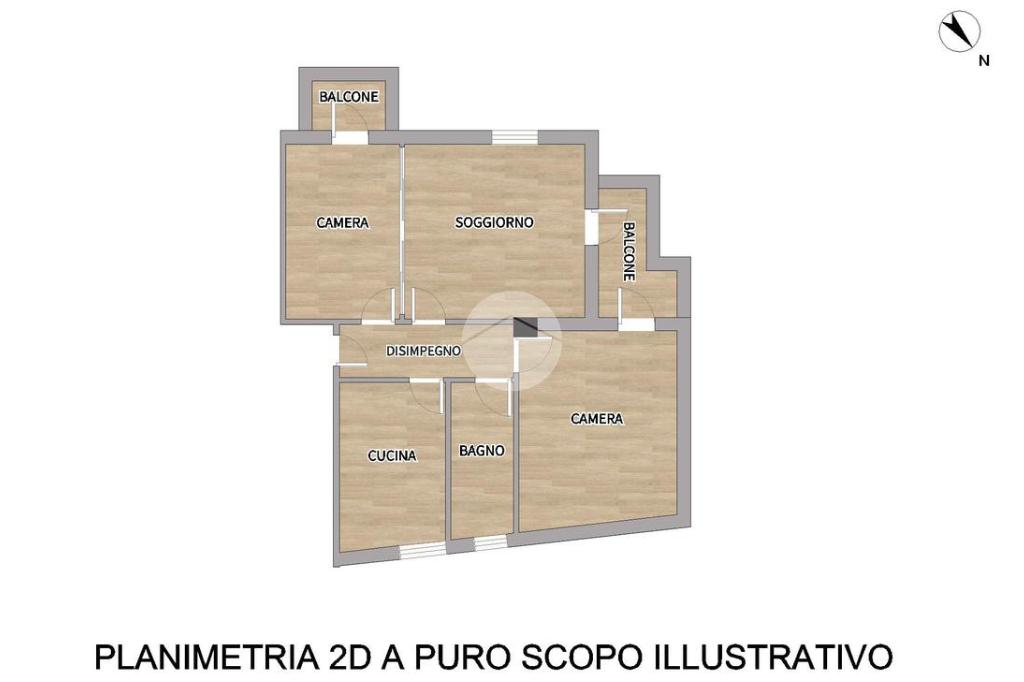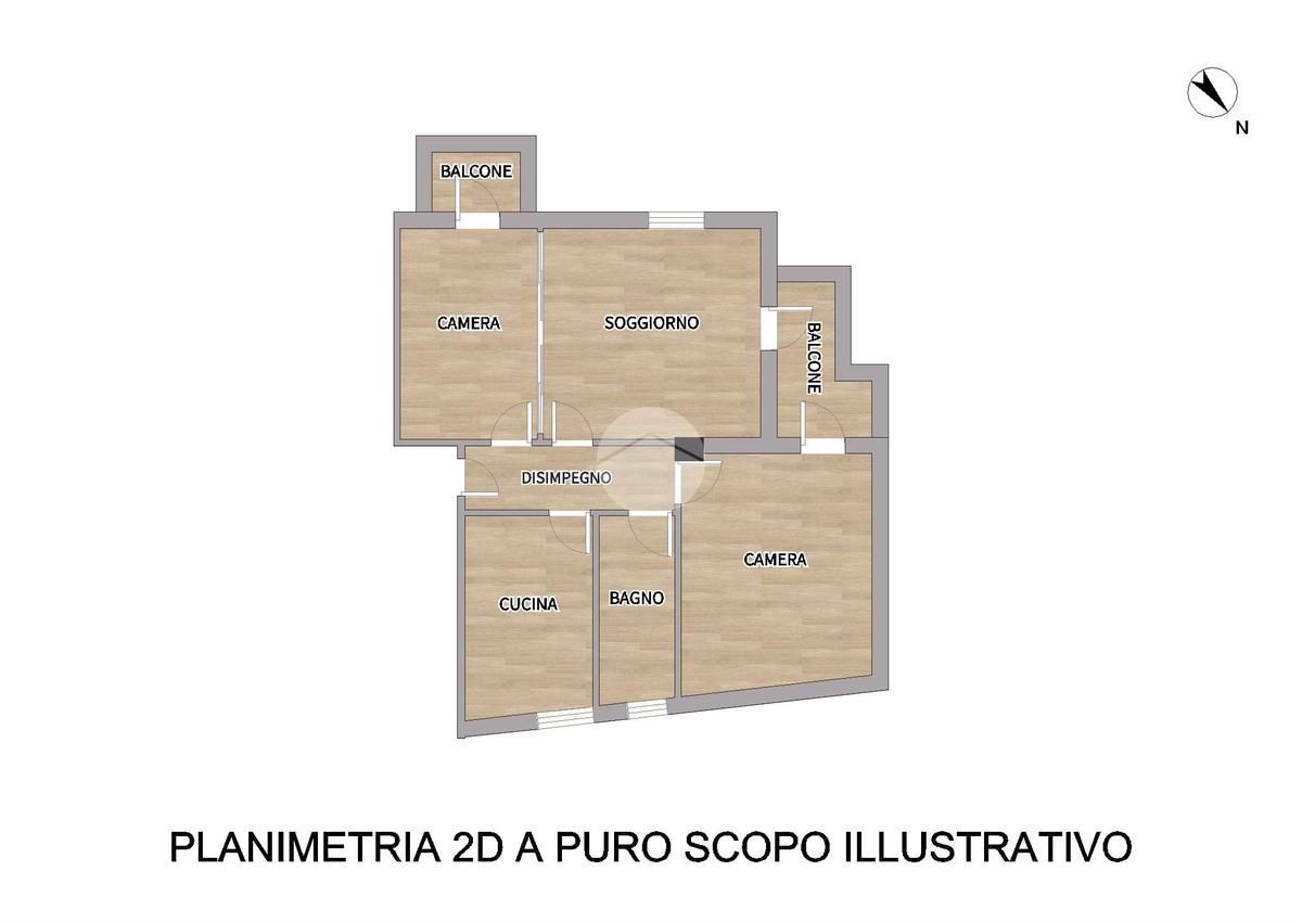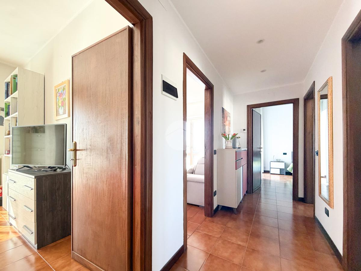 L’immobile è composto da ingresso su disimpegno, cucina abitabile, ampio soggiorno con balcone, camera matrimoniale con accesso allo stesso balcone del soggiorno, camera singola con accesso a secondo balcone e bagno finestrato con piatto doccia.