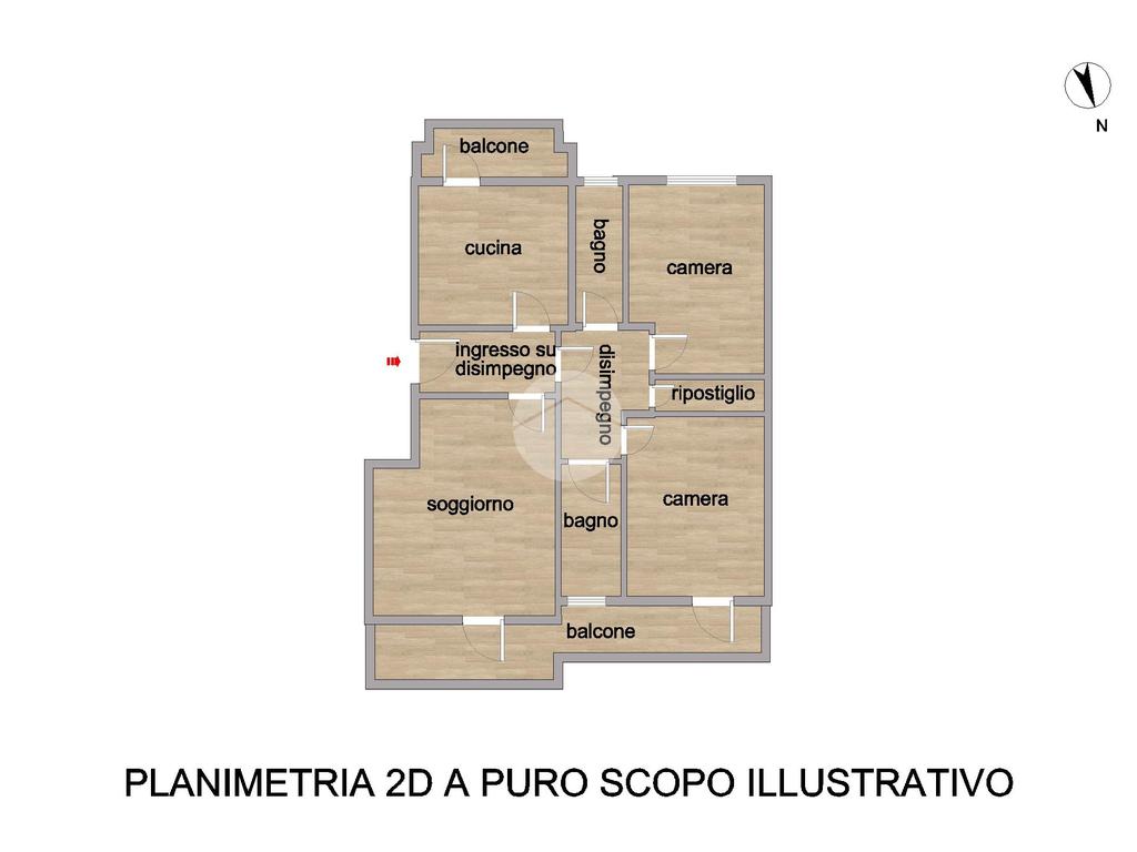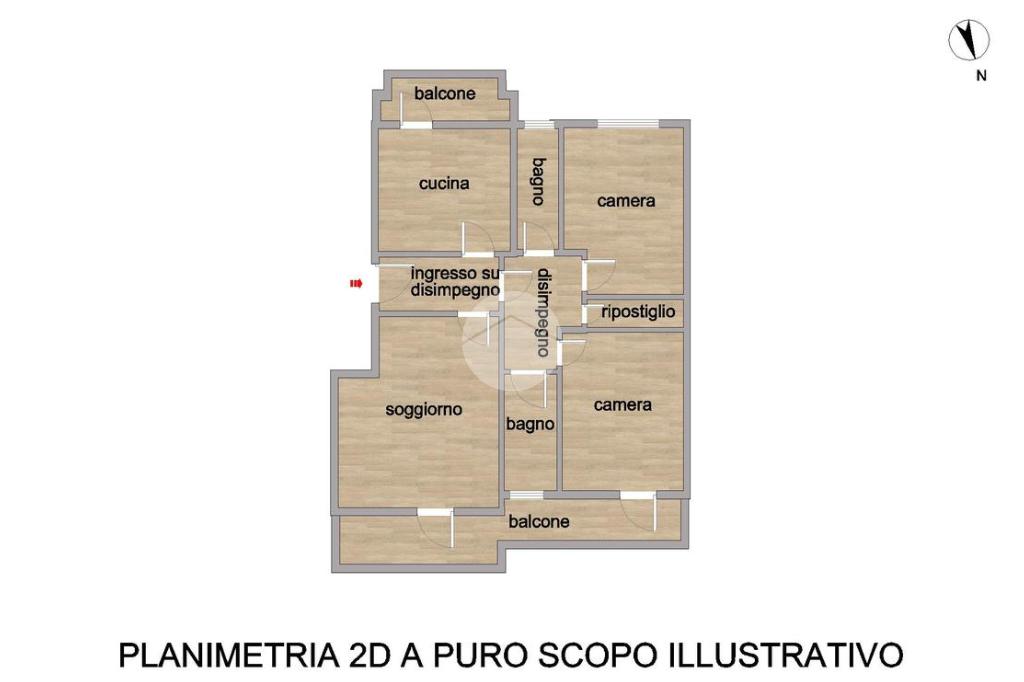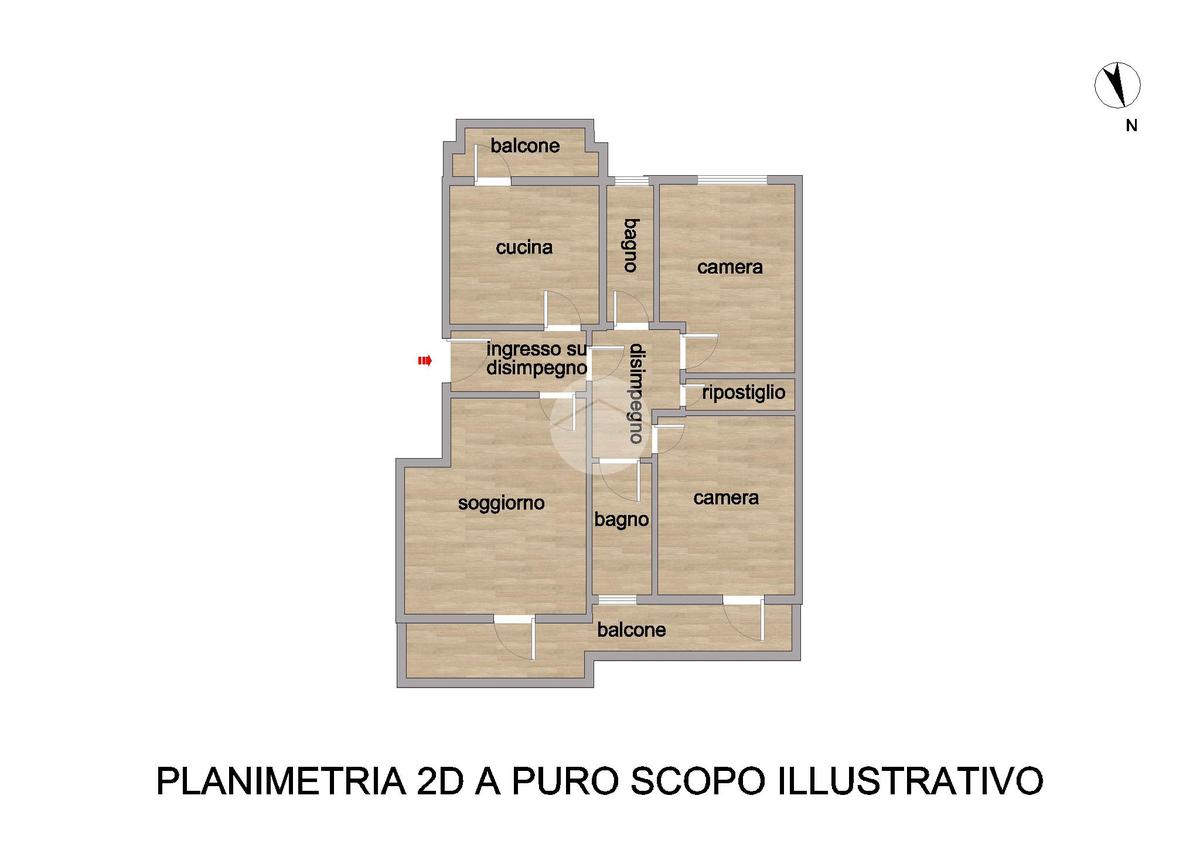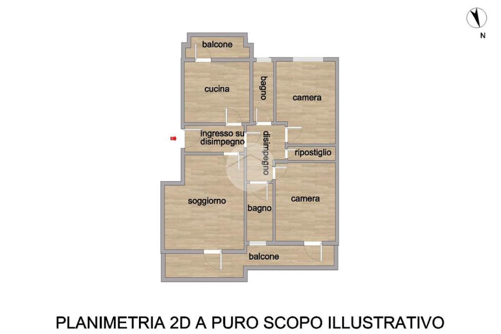 L’appartamento si compone di ingresso su disimpegno, luminoso soggiorno con accesso al balcone, cucina abitabile anch’essa con uscita su un secondo balcone, due camere da letto matrimoniali – di cui una con accesso al medesimo balcone del soggiorno – e doppi servizi completi, entrambi finestrati.